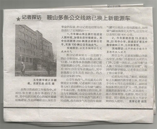 在2015-1-14日的政府工作報告中,對2015年主要工作任務進行了介紹,重點提出加強生態(tài)環(huán)境建設。積極推進“氣化鞍山”,加快建設天然氣母站和輸氣管網(wǎng);新增200輛清潔能源公交車,實施100輛公交車油改氣項目。